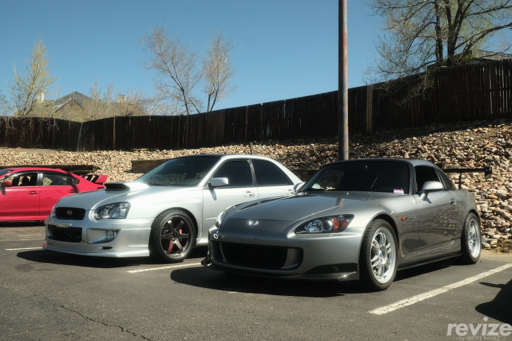 Blob-eye WRX on Volk TE37 SL’s and a S2000 AP2 on Enkei RPF1’s from this line-up of clean cars.