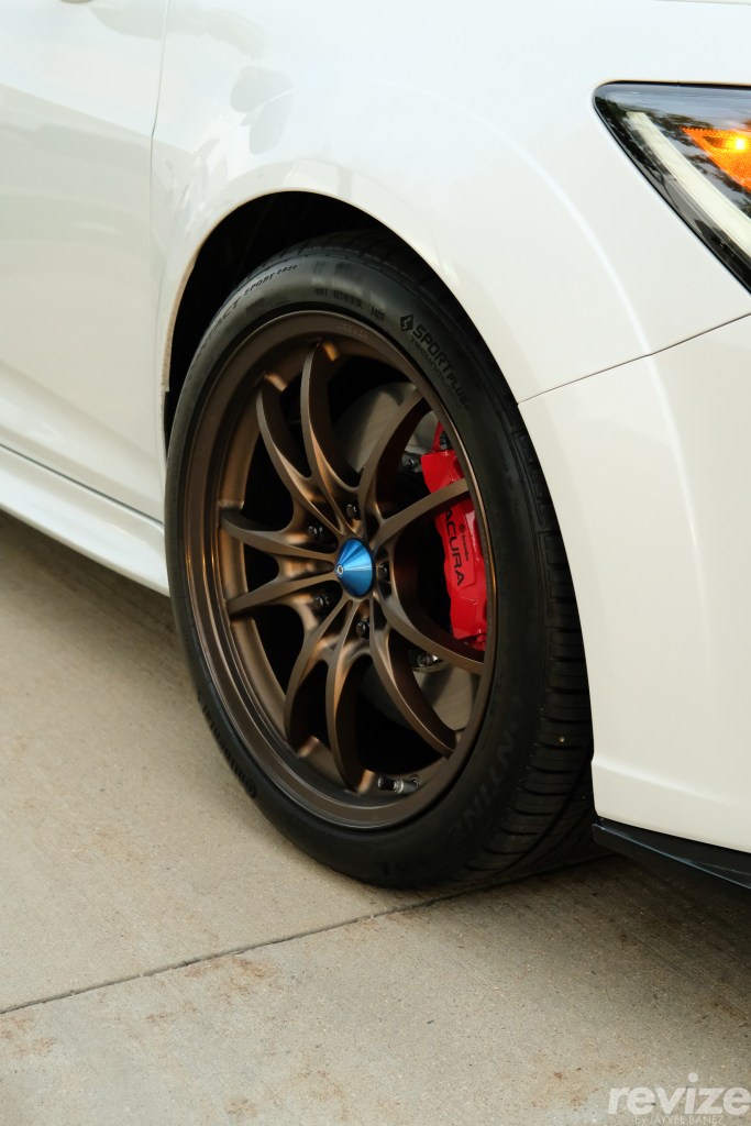 Suprisingly, a 2024 Acura Integra Type S DE5 in Platinum White Pearl also made its appearance at this Honda meet. The wide fender flares of this particular Type S arch over a new set of Mugen MF-10s with anodized blue center caps.