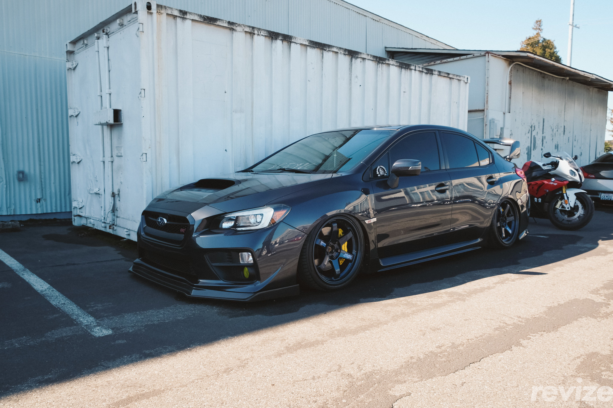 Tucked in the back of the lot was this Subaru WRX STI (VA) “air’d out” on a Mag Blue set of Volk TE37 OGs. The front lip is from Chargespeed.