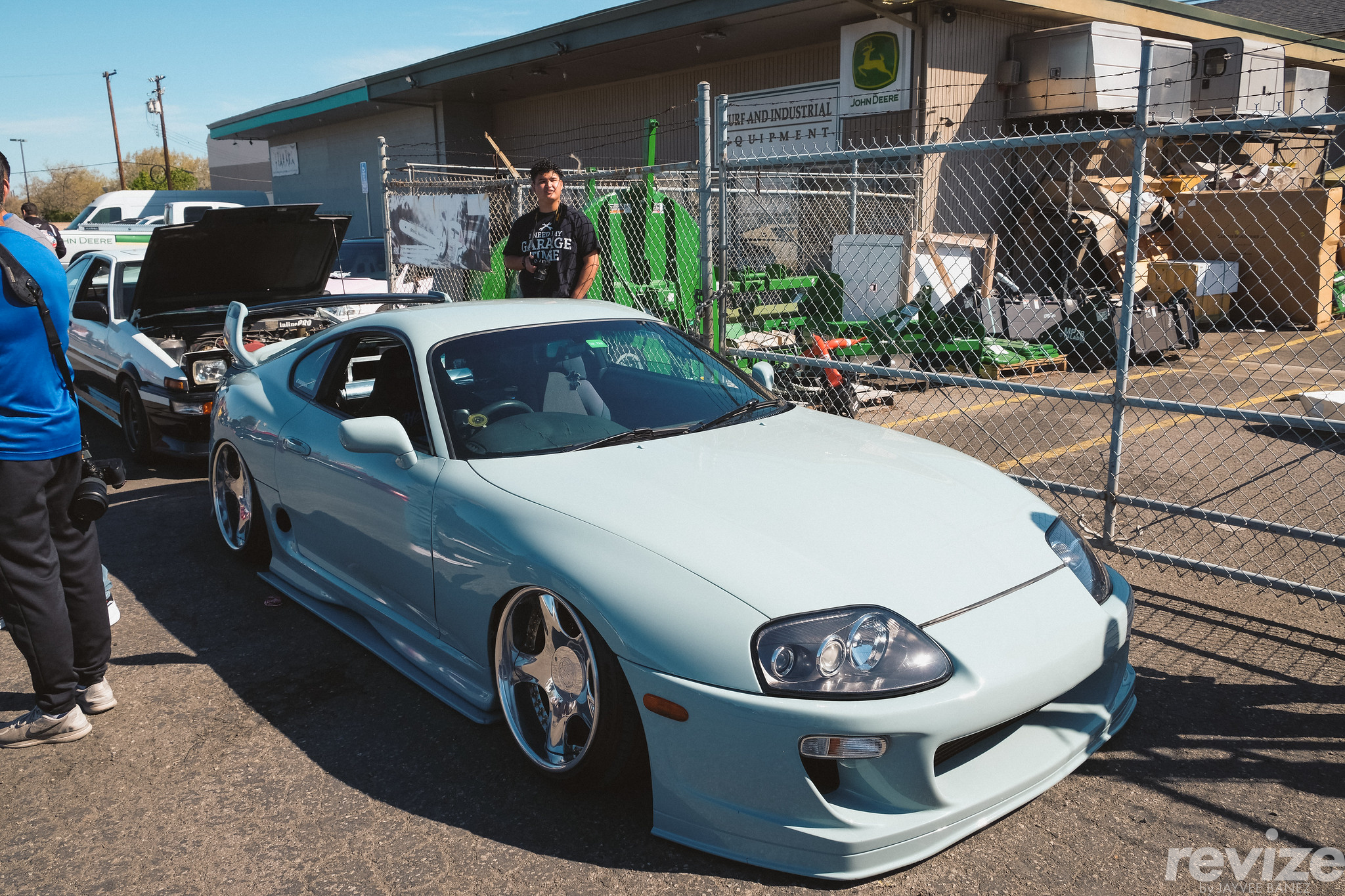 From the overflow lot, Michael, Marlon, and I walked to the TPS Motorsport shop to see more JDM goodness. Take a look at this RHD Toyota Supra (A80). In baby blue paint, we see that it’s running Ridox Max Orido front bumper and sideskirts, TRD spoiler, and 3-pc wheels that I couldn’t identify. The wheels almost look like the stock 5-spoke wheels that come with the MK4 Supra.