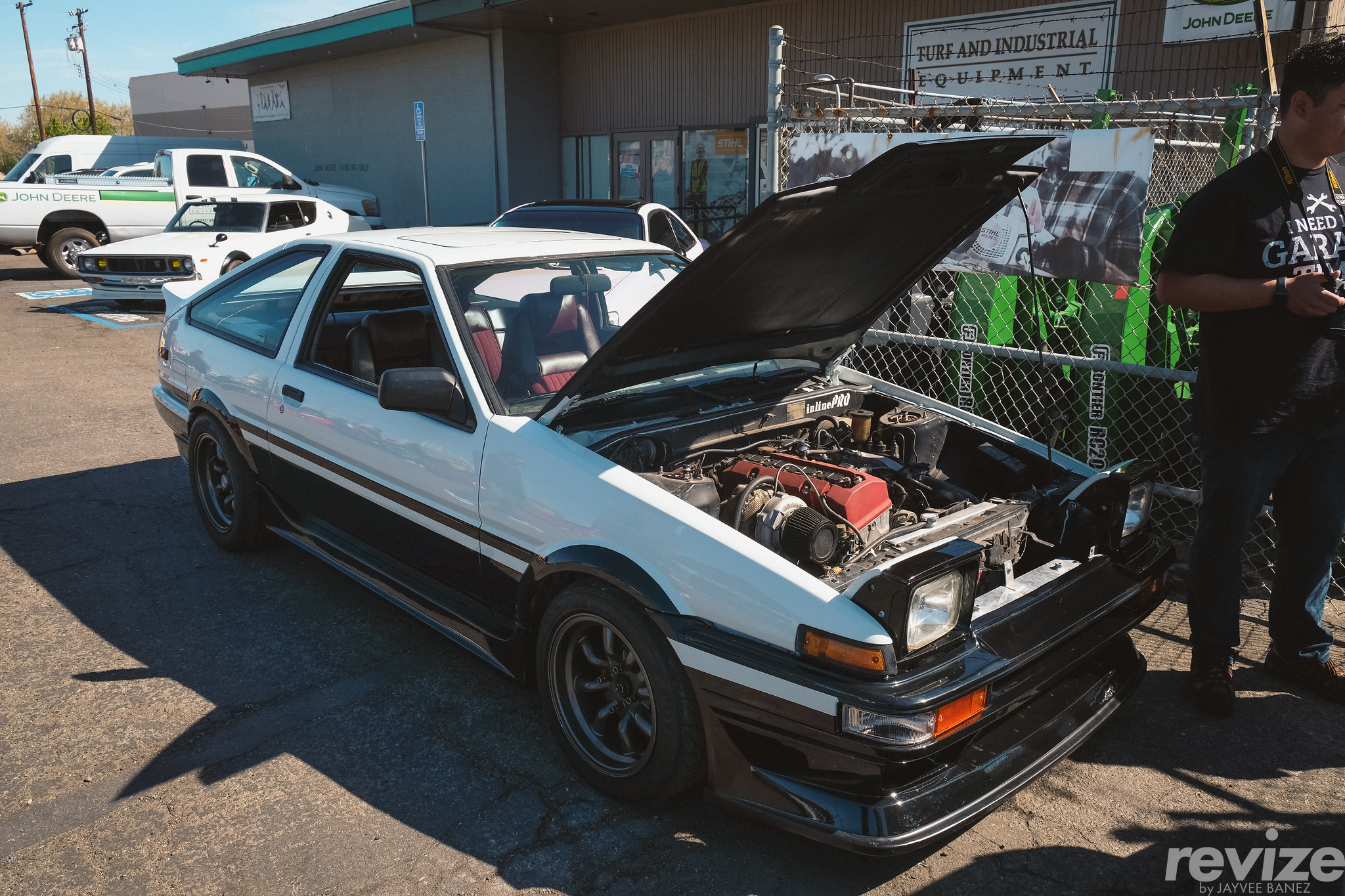 Behind the Supra was this Toyota Corolla Hatchback (AE86) with a F20-engine from the Honda S2000. To make things more interesting in the engine bay, a Garrett turbocharger is mated to the originally-naturally aspirated engine.