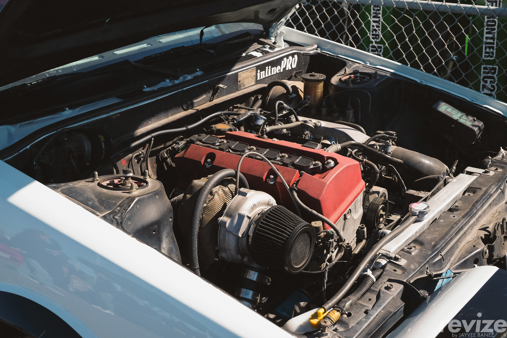 A closer look at the Honda-swapped Corolla’s engine bay…