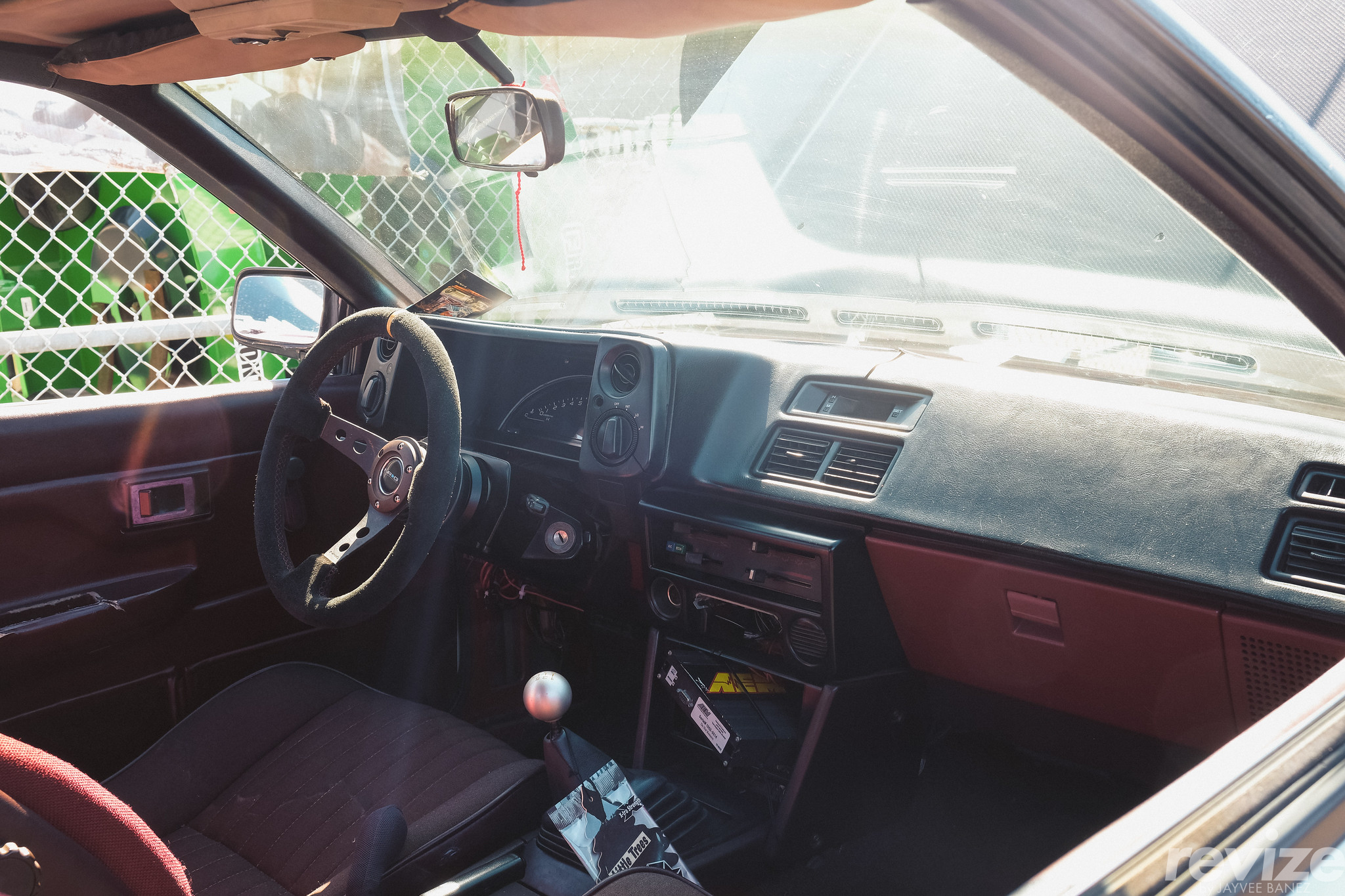 Ignore the NRG steering wheel and you can fixate on more Honda pieces in the cockpit. The analog cluster has been replaced with a Honda S2000 instrument cluster and the shift knob is from the 8th gen Civic Type R.
