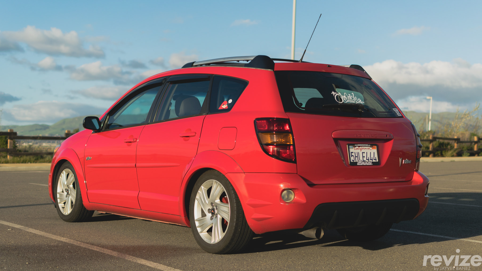 The car has came a long way since the key was transferred from my mom’s hands to mine. It’s been with me for most of my early-college years and it’s treated me good. It drove me to my first job, to my senior prom night, to Panther Beach in Santa Cruz, to Highway 9, to Alameda Point, to Sacramento, to various car meets all over the South Bay, to my favorite boba tea spots, to WekFest San Jose, and to my favorite viewpoints. Never in my life had I ever dreamed of customizing a Pontiac Vibe. It was never a chassis that I thought would look merely as cool. To me it was just a sexier looking Toyota Matrix with integrated roof racks.