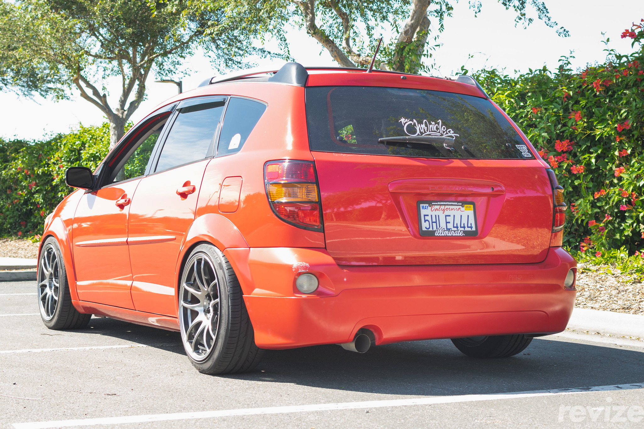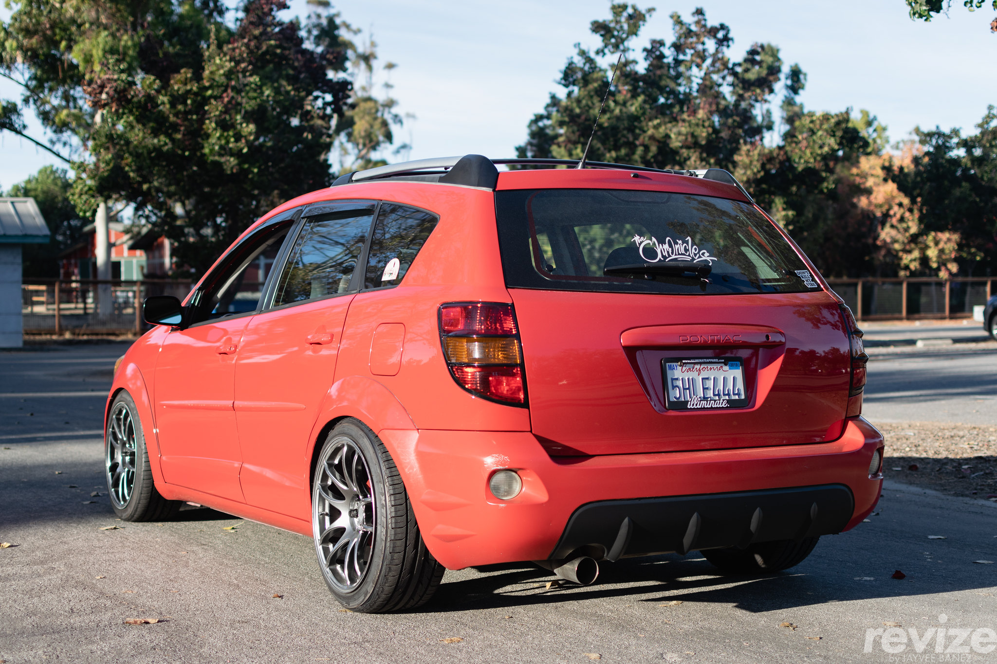 The next modification to my mom’s Vibe was a sticker tune. The main sticker is the “The “Chronicles” vinyl from Joey Lee of The Chronicles, aka “stickydiljoe”. After that, I wanted to make the rear look slightly more aggressive so I decided to wrap some of the rear bumper in black vinyl wrap. It gave it more contrast to the boring rear end of the hatchback.