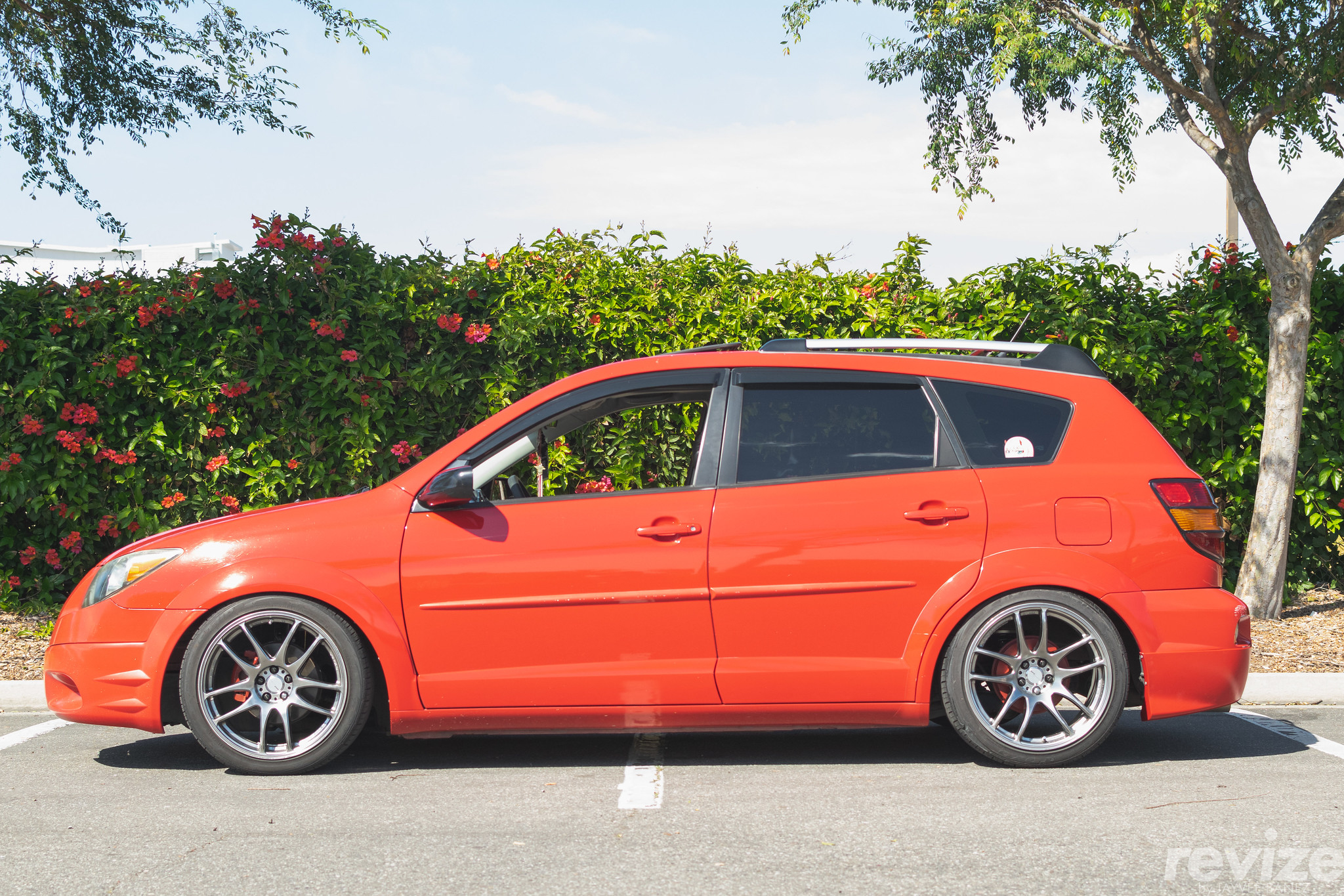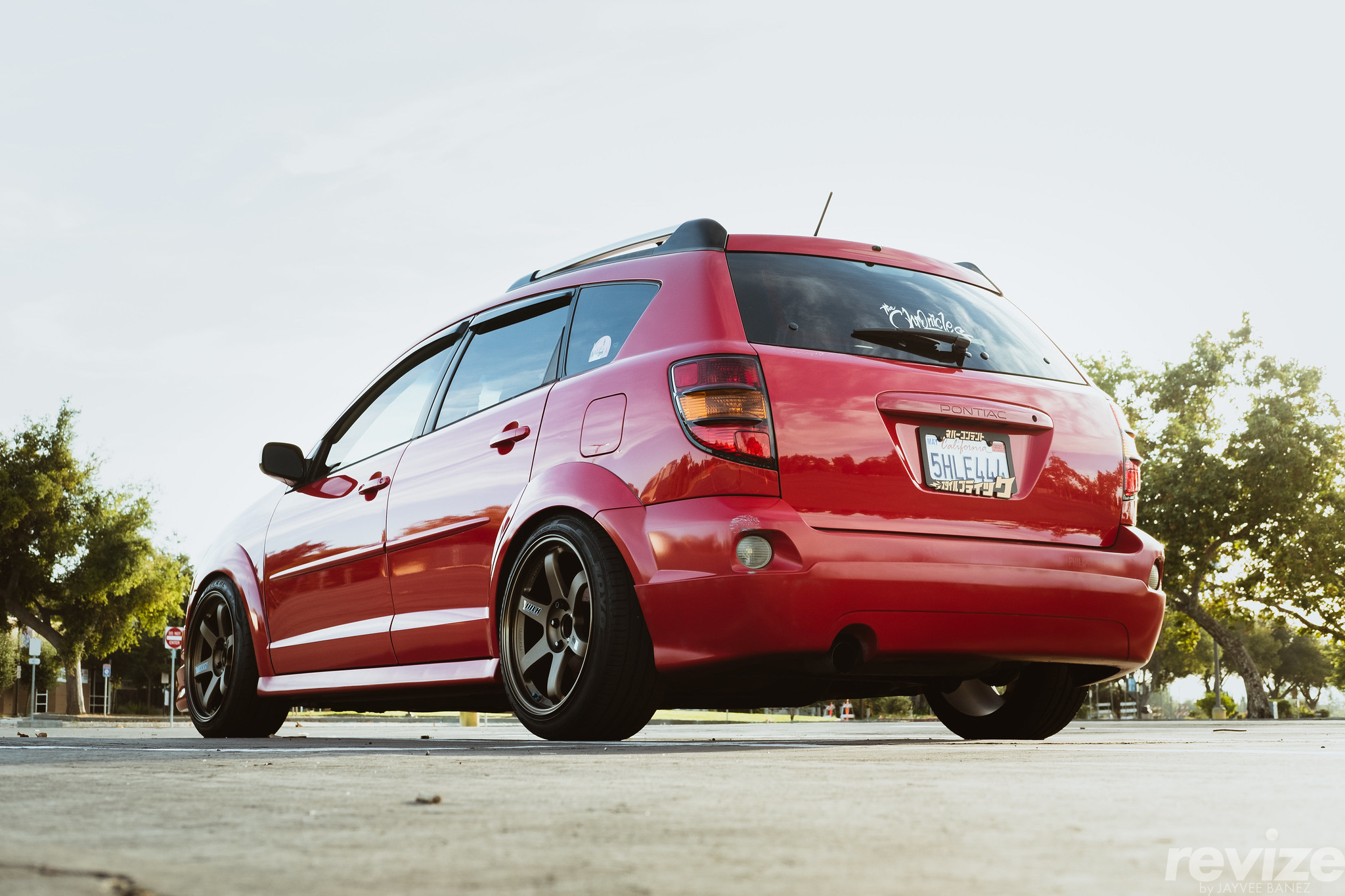 I was fortunate enough to have a car to drive. I had a couple of options of cars to drive though; however, it was up to my parents to choose which car I was going to drive. The first option would be my dad’s 1985 Nissan 200SX – naaah that’s his baby; would he really trust me with that thing? The second option is a car I really wanted to drive: our family van, the 1999 Toyota Sienna. It would be the perfect mobile to transport me and the homies. My dad knew that I had this intention though. The last viable and sensible option: the 2004 Pontiac Vibe. My mom got rid of her late-80’s Toyota Cressida so she needed a replacement. Luckily, my Uncle Glen gifted us this Lava Red Pontiac Vibe with optional Vibe GT 17″ wheels.