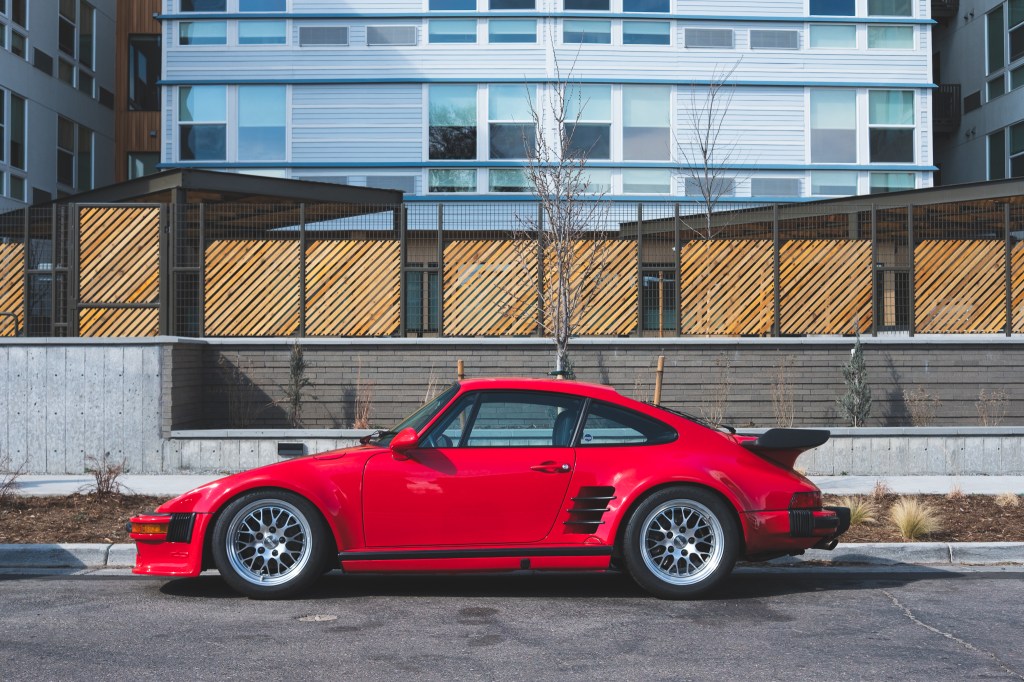Another block heading south on Acoma street, I spotted this Porsche 911 Turbo (930) slant nose. With meaty tires wrapped around the Fikse Classic FM/10 wheels, the fenders get filled up appropriately. What a nice side silhouette from this red coupe. Sheesh.