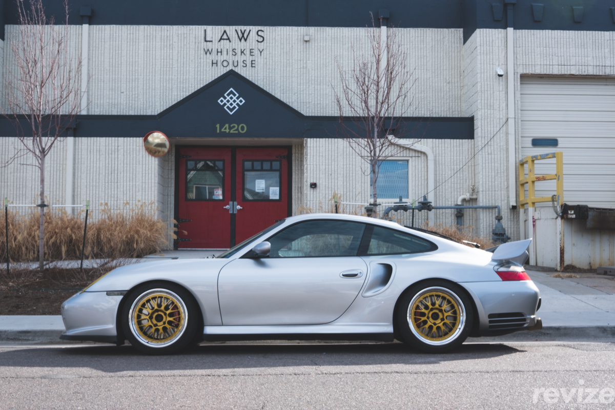 About 2 blocks heading north on Acoma street, I approached this Porsche 911 Turbo (996) also on a set of BBS E88 wheels. The 996 silhouette continues to grow on me every time I see one…