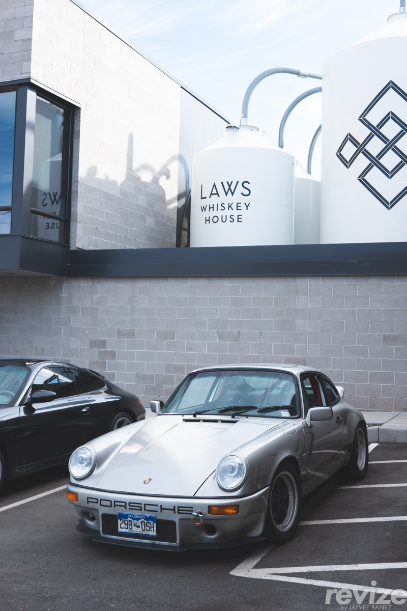 In the Laws Whiskey House parking lot, there was this dedicated track-car Porsche 911 (930) with a RSR/IROC style front bumper. It looked really cool in front of the monochromatic distillery building.