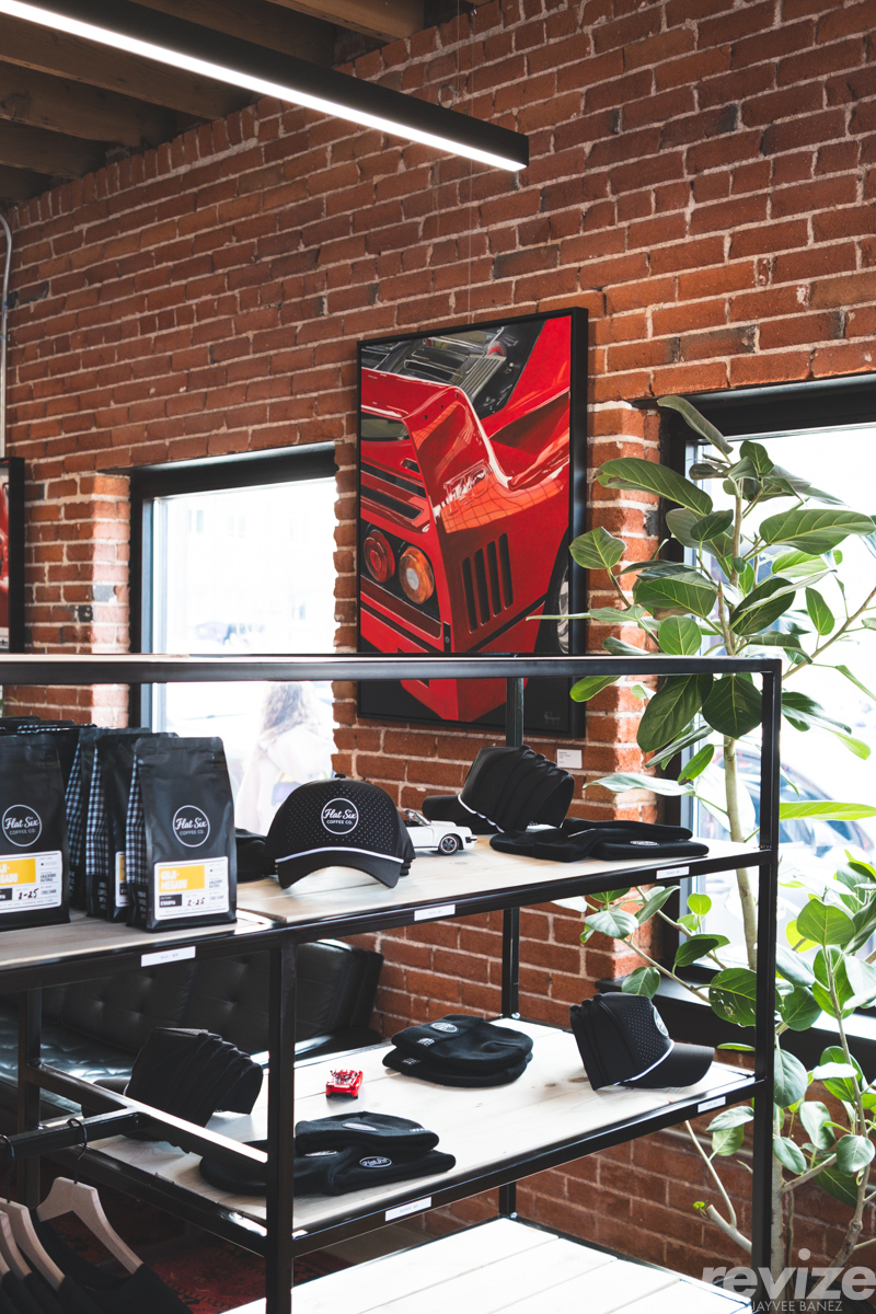 Inside the coffee spot, it’s a pristine place with automotive artwork, modern furniture, and clean brick walls. When I heard about the meet weeks prior, I input the address on Google Maps and went to Street View. I observed that the Flat 6 Coffee spot used to be a repair shop called “Eurasian Motors”. It’s quite fitting that the automotive-centered coffee shop used to be a automotive repair shop.