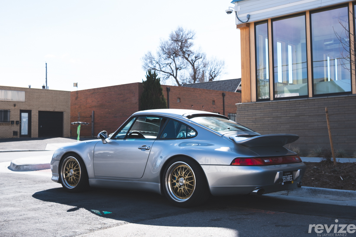 To complete a trio of of silver cars with gold wheels: here is this silver Porsche 911 (993), with an RS wing, on gold BBS E88s.